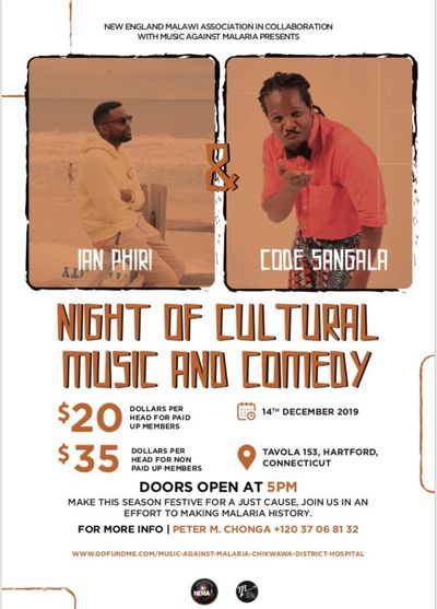 Join ZANE in supporting the New England Malawi Association's Night of Cultural Music and Comedy. Proceeds from this fundraising event, a collaboration with Music Against Malaria, will go toward constructing a ward at Chikwakwa Hospital.